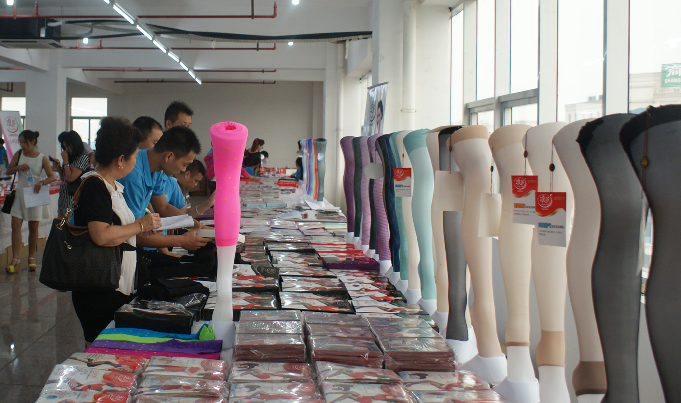 浪莎针织有限公司每年进行多次新品选货会,让客户可以第一时间抢订到市场畅销的产品,抓住最佳的市场销售机会。图为,客户在公司工作人员的介绍下选货。