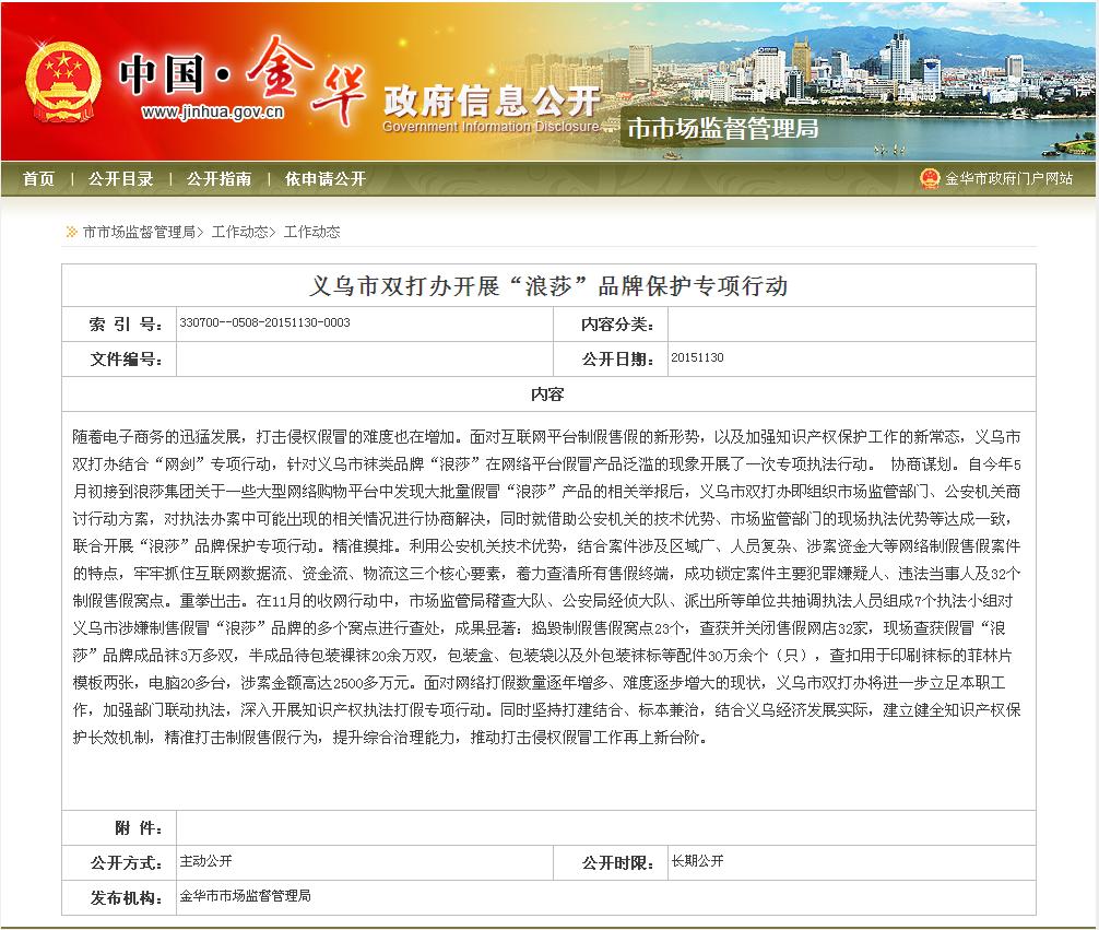 义乌市双打办开展“浪莎”品牌保护专项行动