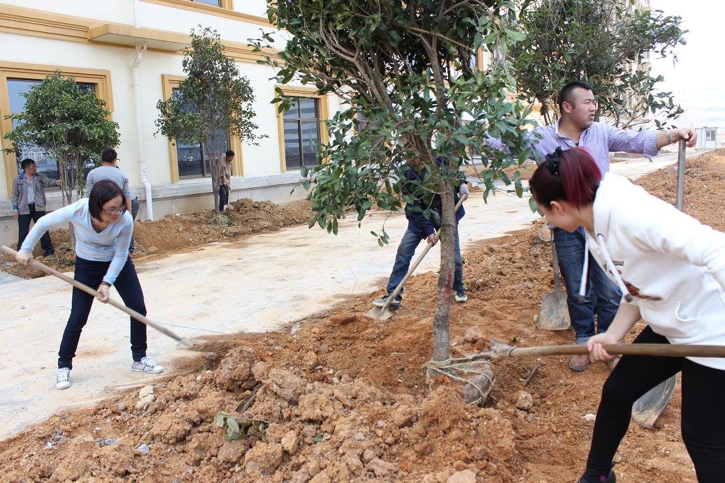 今天是312植树节,中午过后,浪莎集团党总支书记兼集团总经理翁关荣带领全体党员,参加义务植树活动,将党建工作落到实处,全力配合义乌国家卫生城市的复评工作。植树过程中书记翁关荣最为卖力,已经完全不顾脚上穿高档皮鞋,他用夹杂着浓重的义乌方言的普通话说:“种树好嘞,绿化多了环境也会好起来,大家在好环境下才会安居乐业,促进社会和谐。”党代表陈筱斐说:“前人种树后人乘凉,种下好种子,就会结出好的果实,这是一种善举,人人参与,终究会得到福报。”