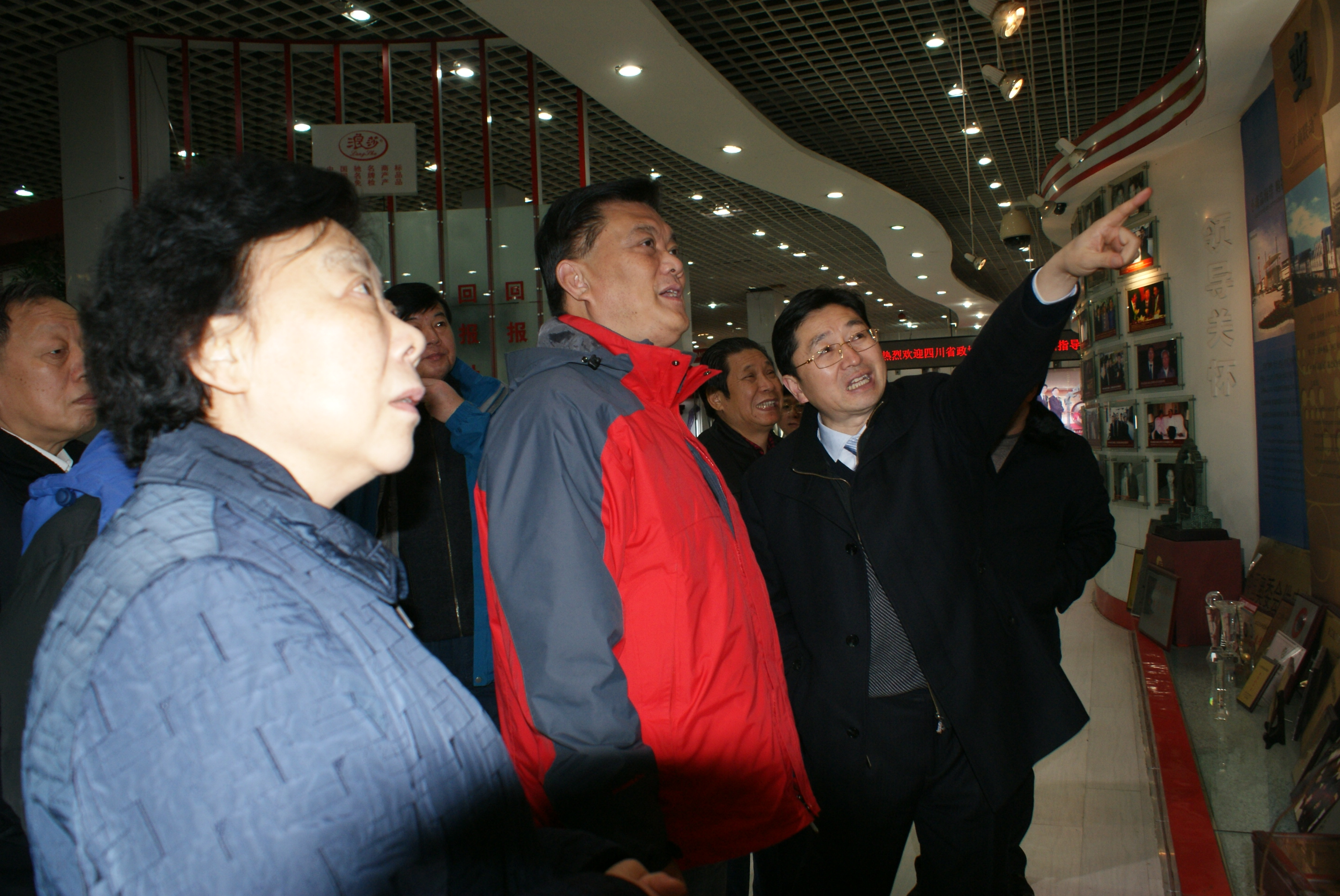 随后解主席来到了浪莎产品展示中心,作为全国工业旅游示范点,展示中心不仅陈列展示了浪莎企业文化和浪莎产品,还对义乌人文及小商品城的变迁进行展示宣传,吸引了来访领导的驻足观看品读。在座谈会结束后,解主席一行启程离开,临行前解主席与翁董事长合影留念。