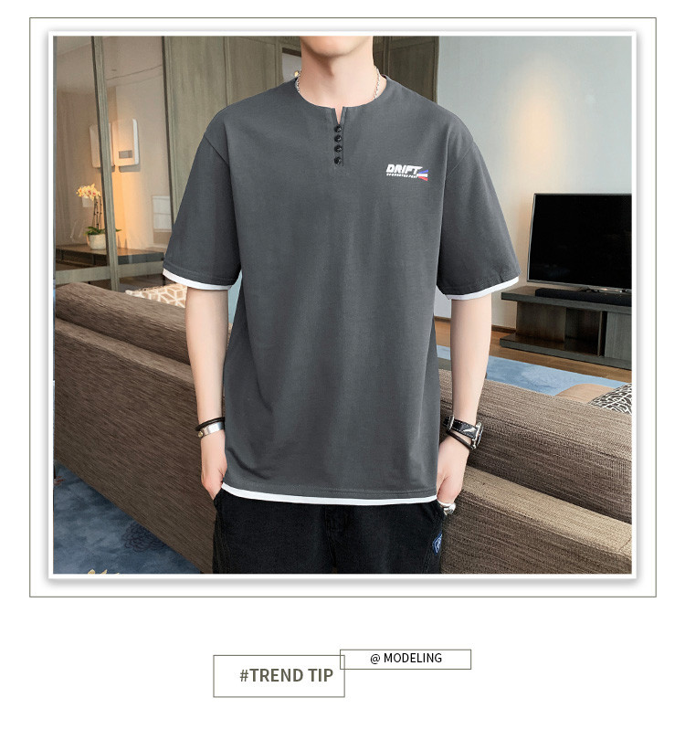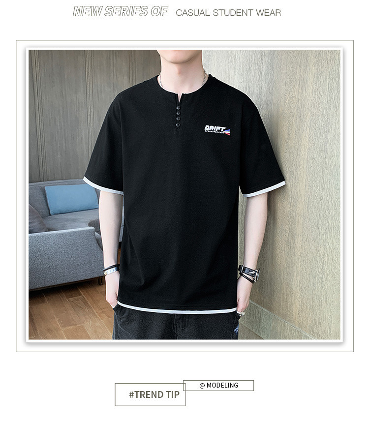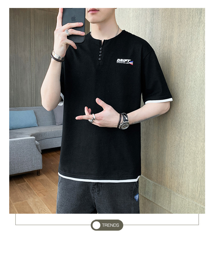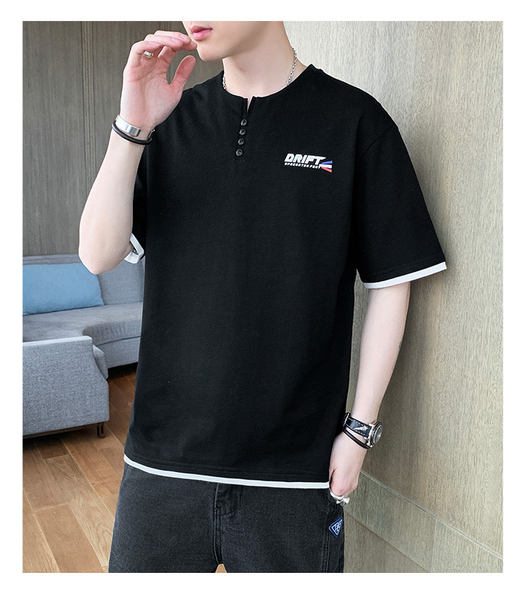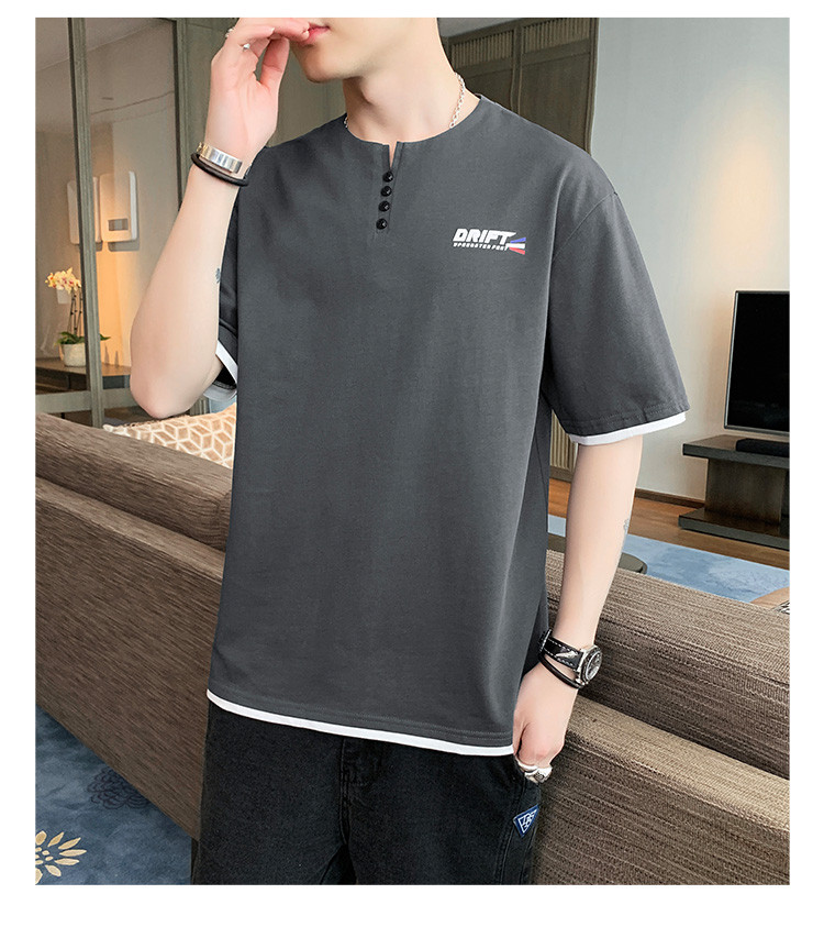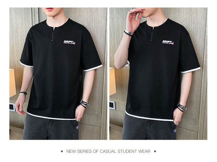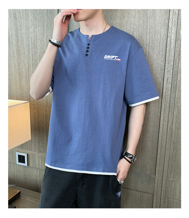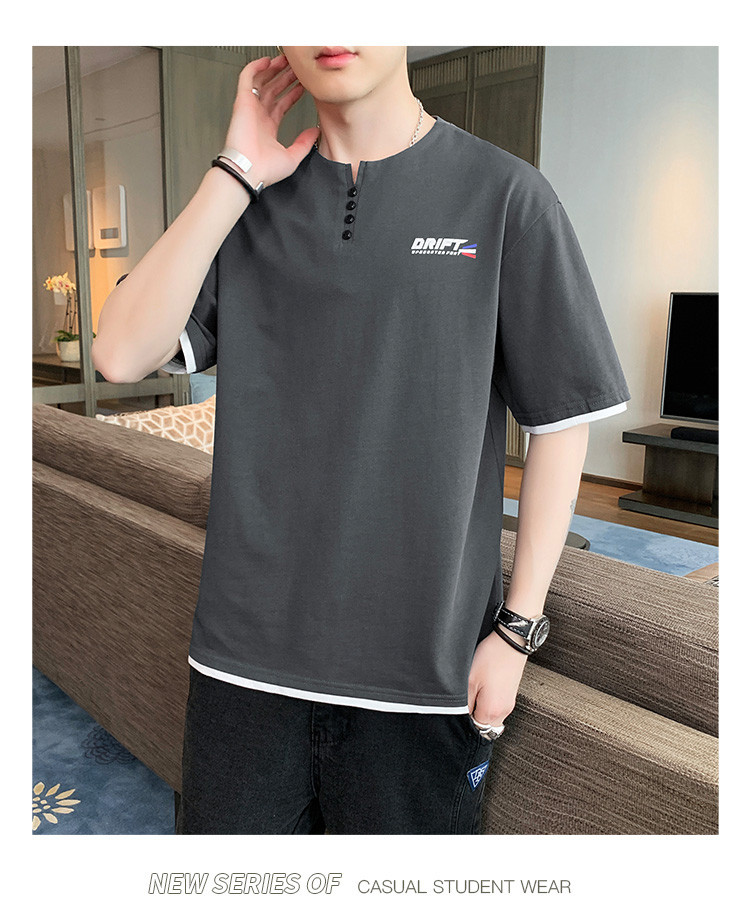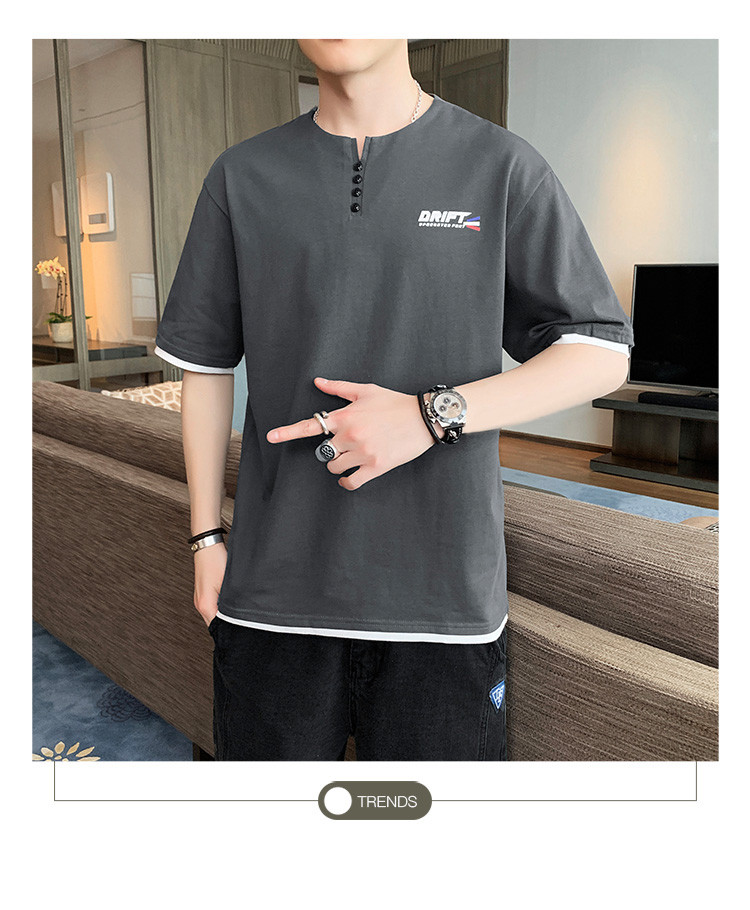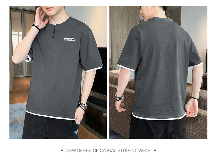 短袖T恤男夏季新款纯色宽松百搭假两件纯棉透气打底衫