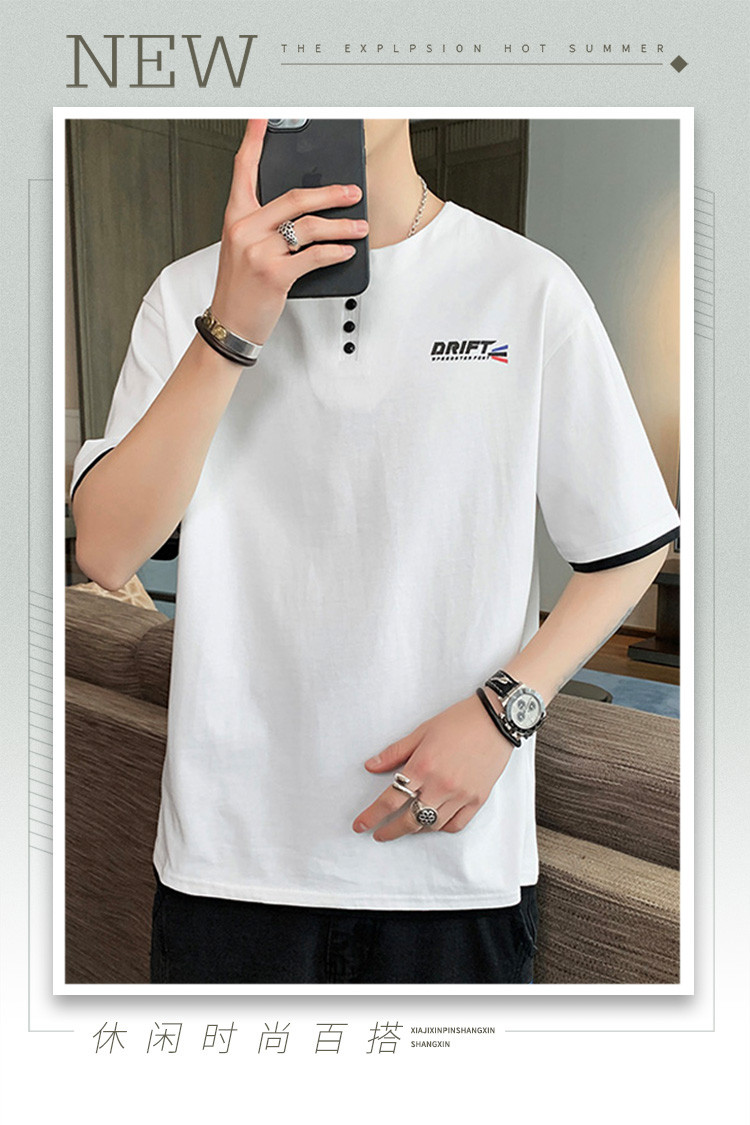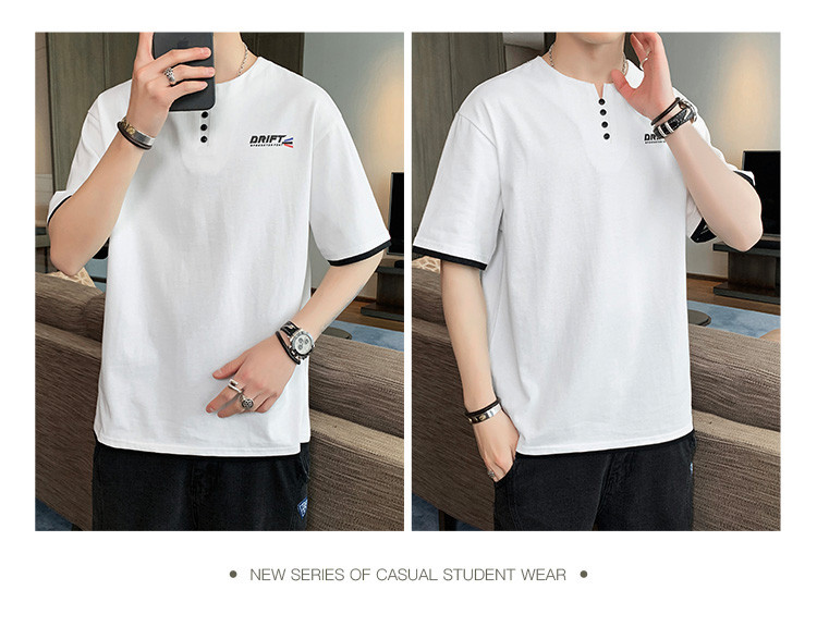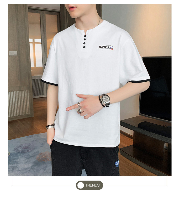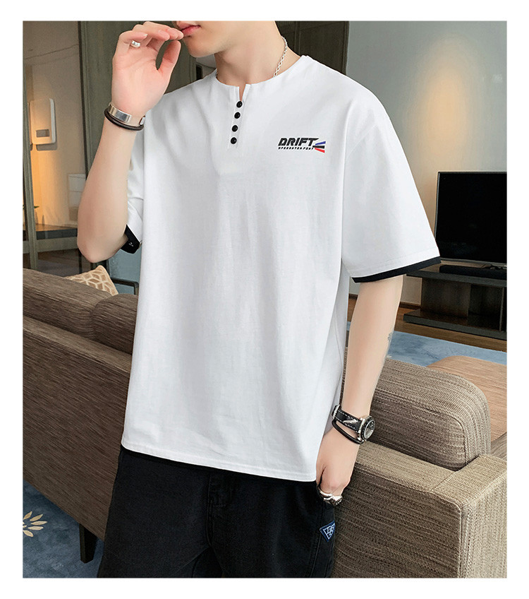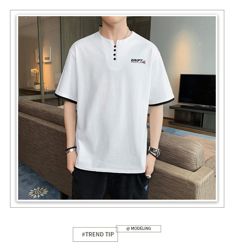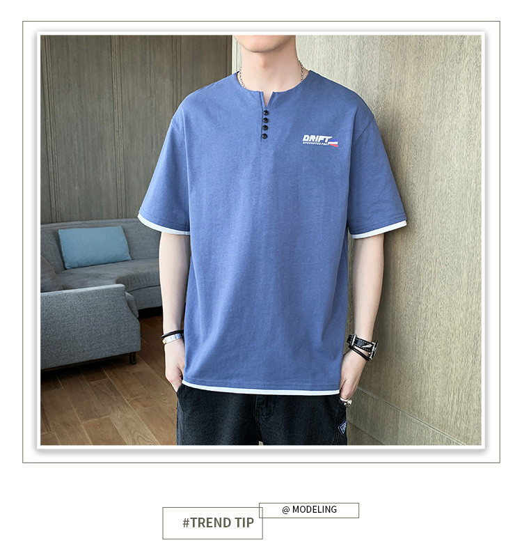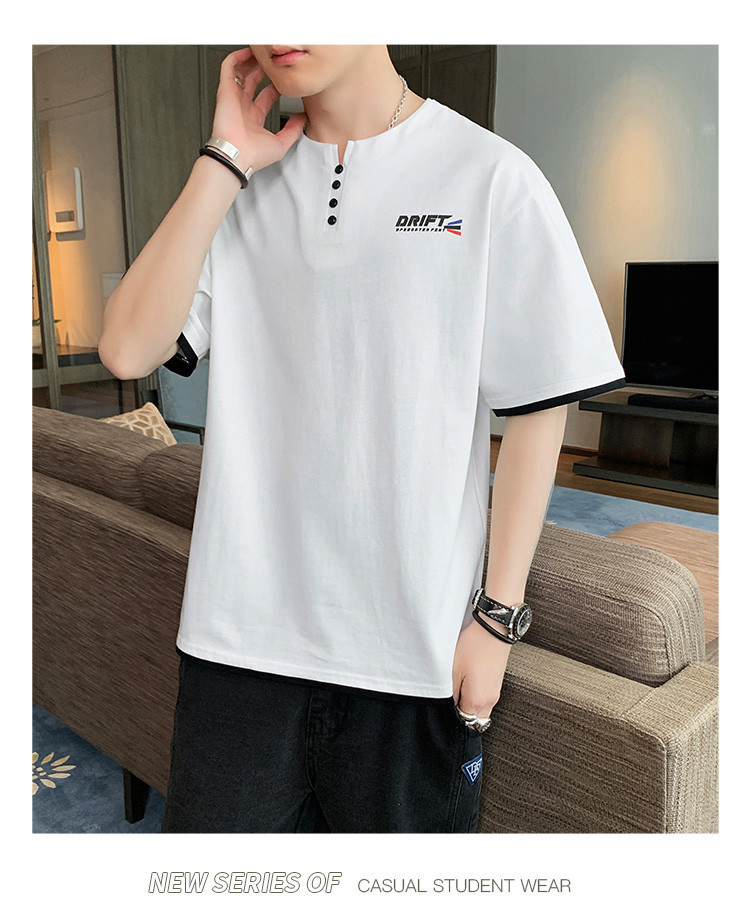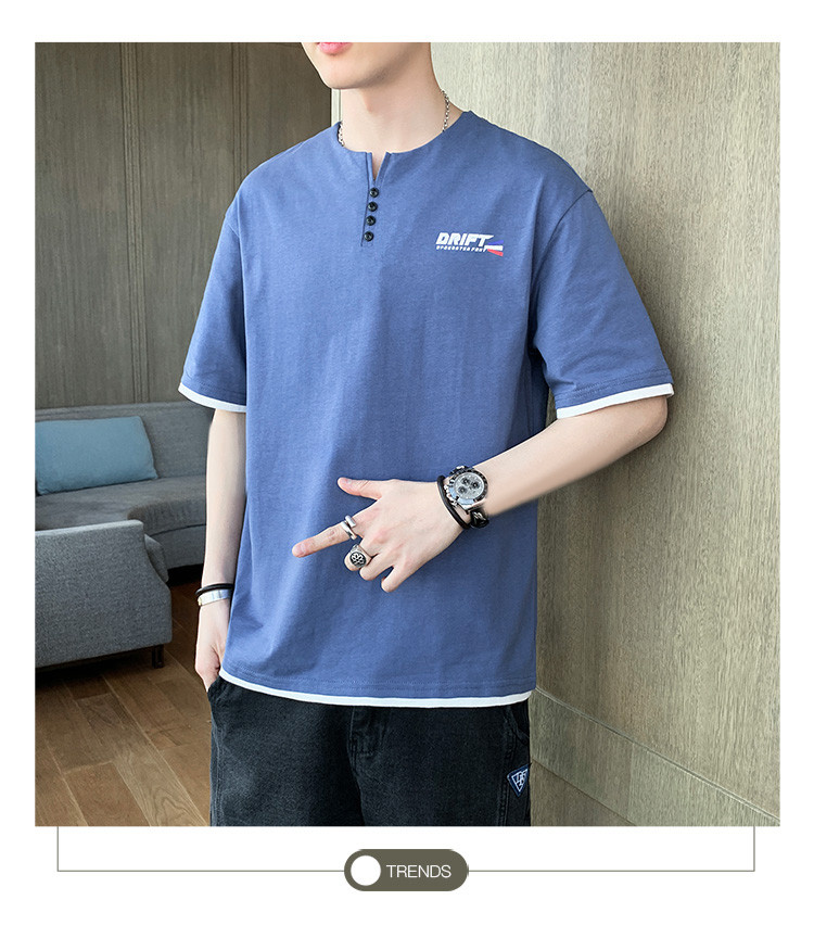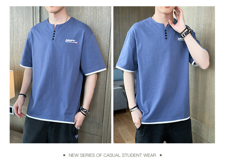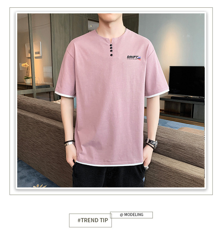短袖T恤男夏季新款纯色宽松百搭假两件纯棉透气打底衫