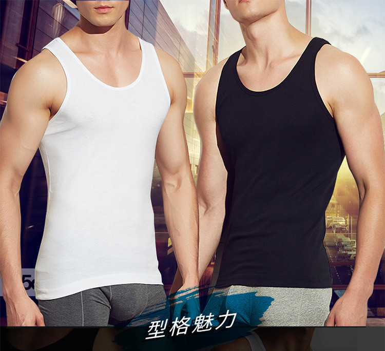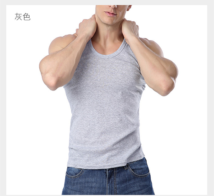 男士纯色吸汗运动纯棉罗纹圆领背心