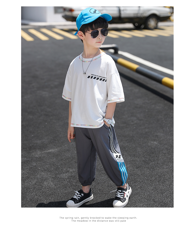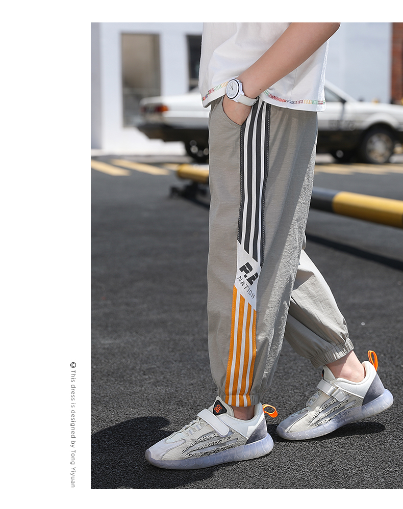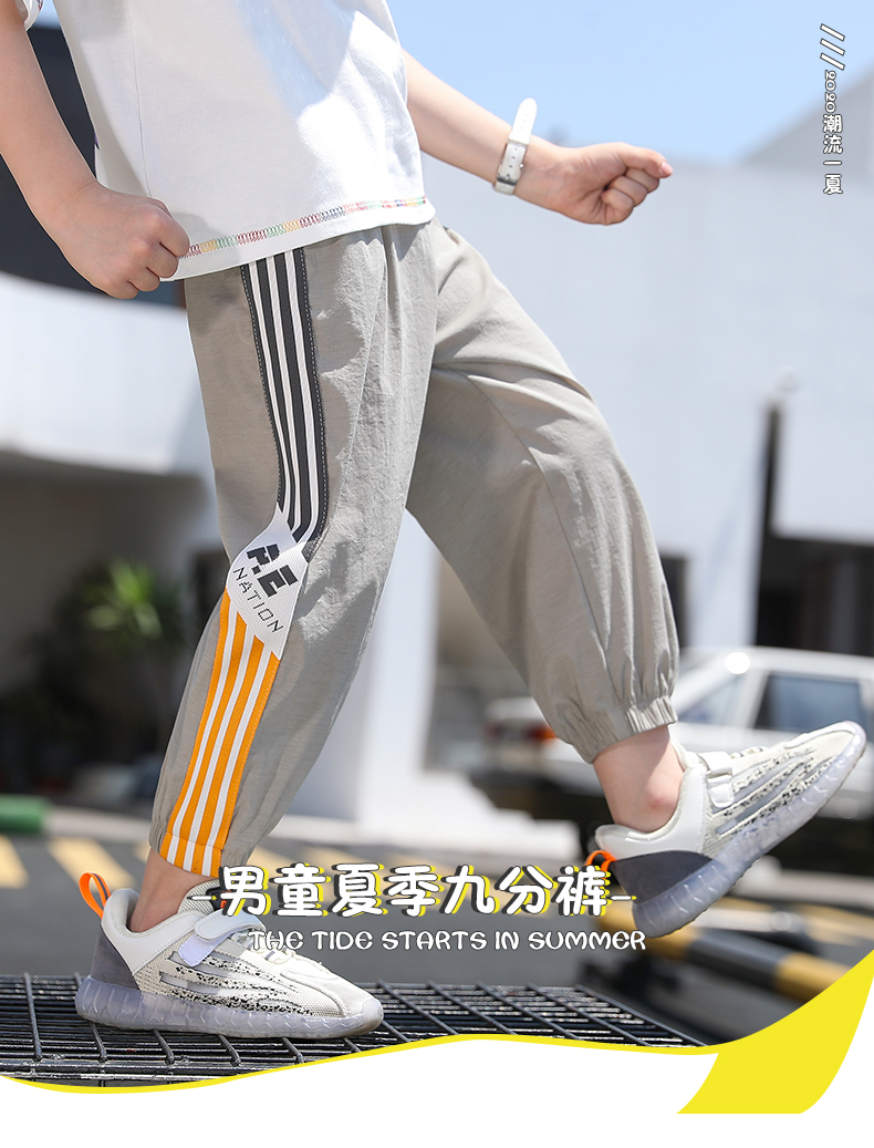 浪莎男童裤子运动长裤子儿童装2021新款夏装洋气中大童百搭束脚裤