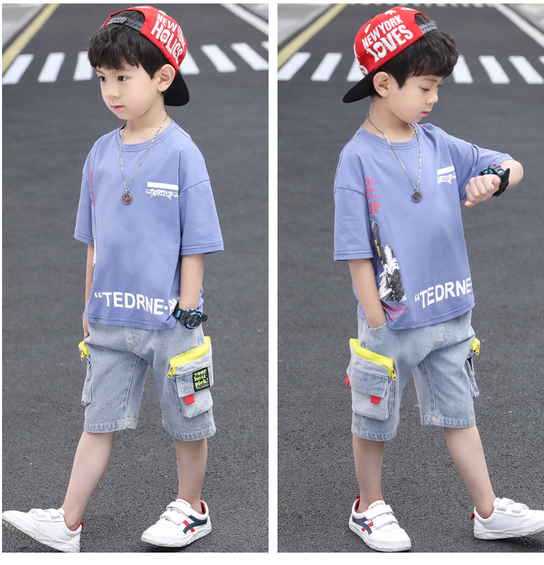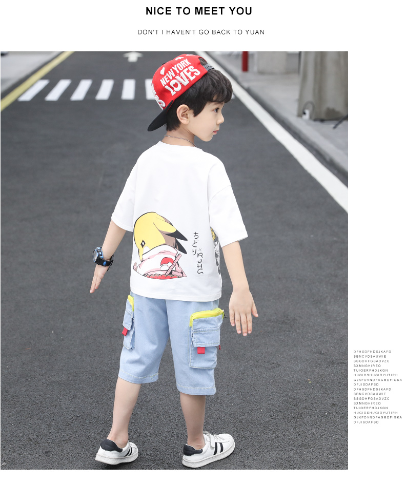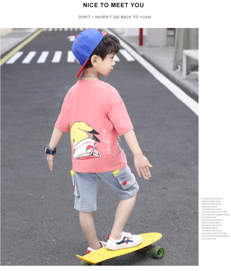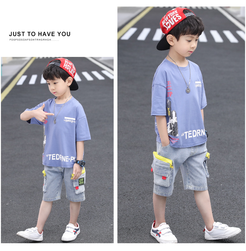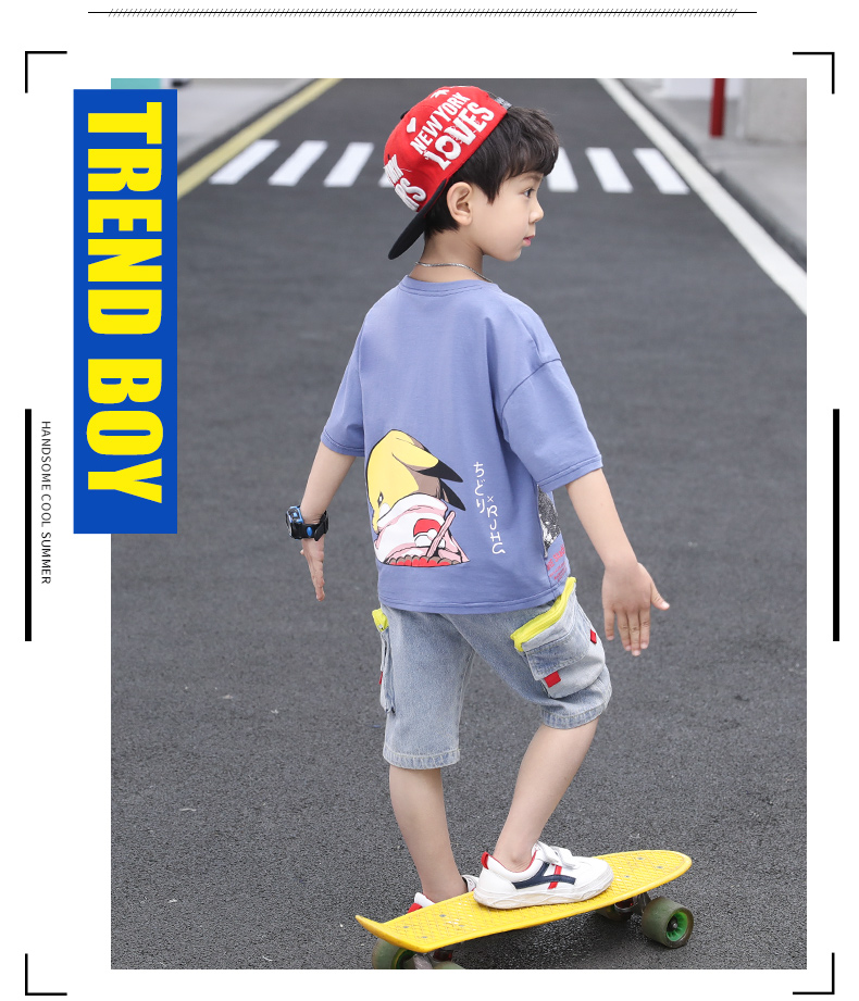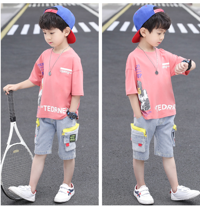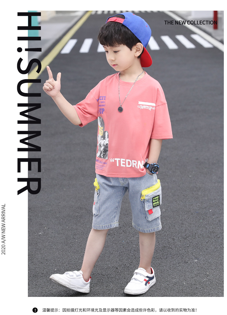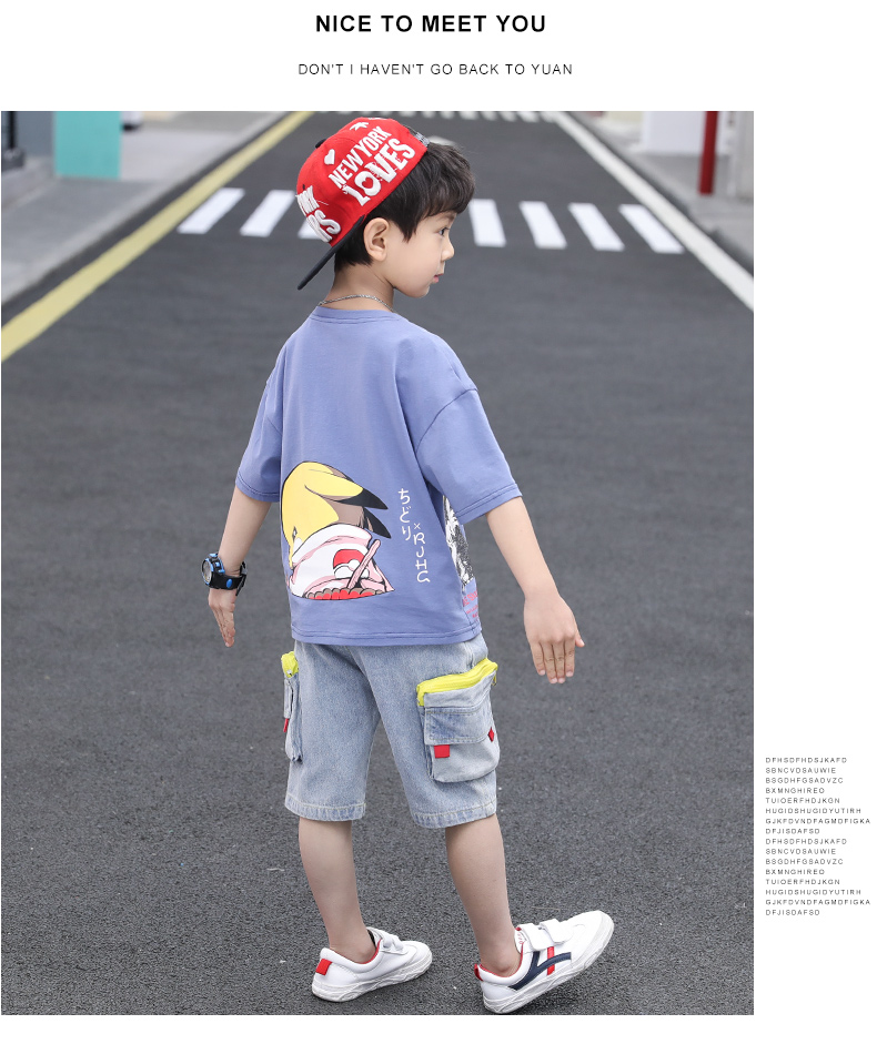 浪莎童装儿童男童短袖套装2021新款夏装中大童两件套宝宝卡通套装