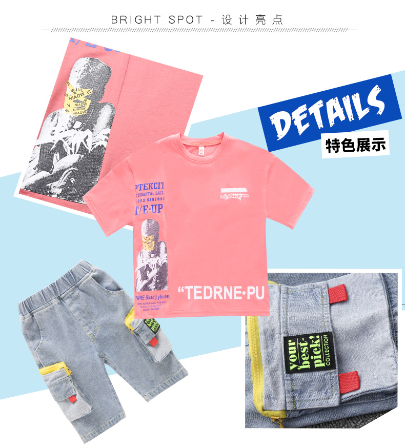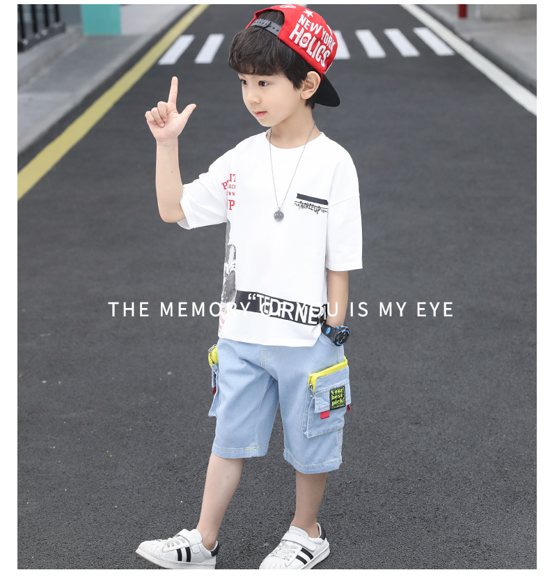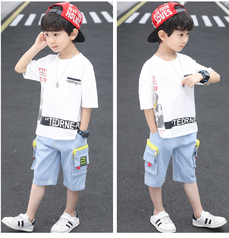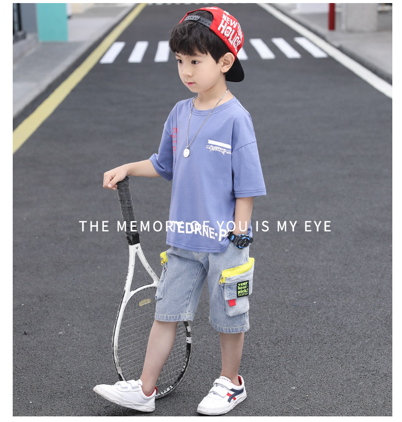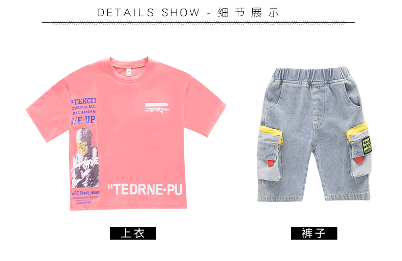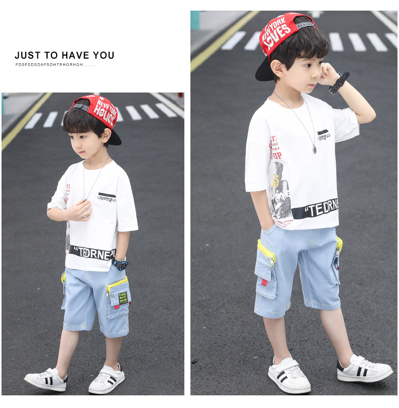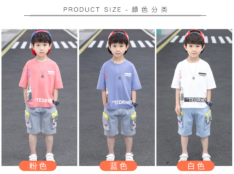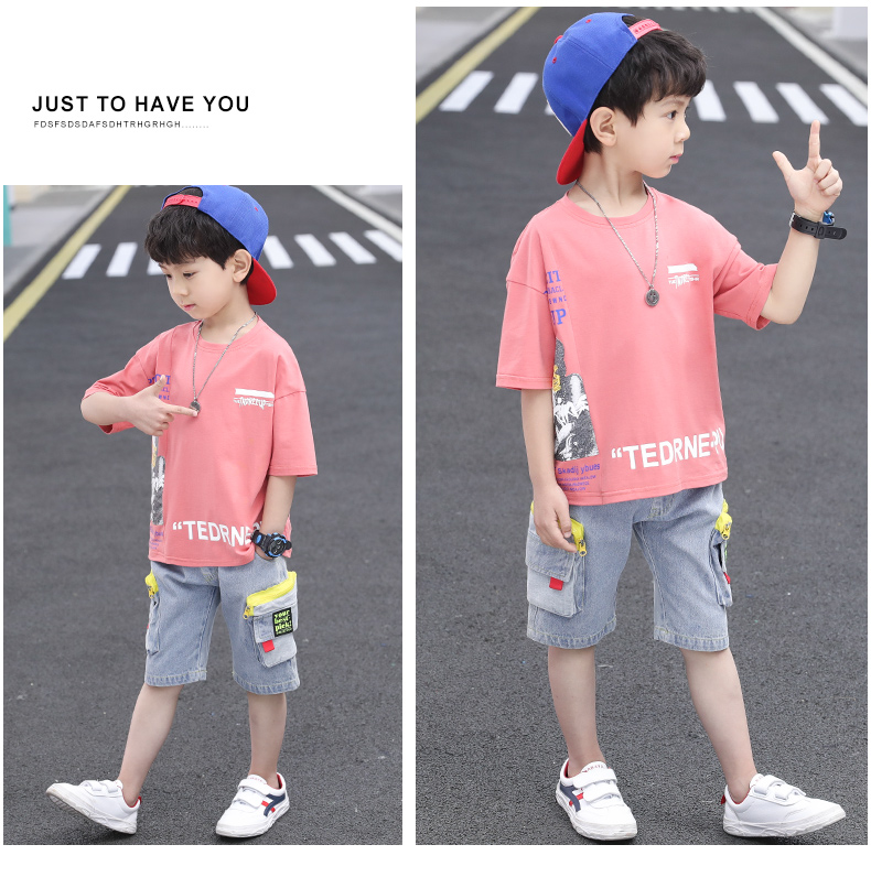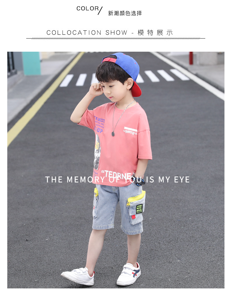 浪莎童装儿童男童短袖套装2021新款夏装中大童两件套宝宝卡通套装