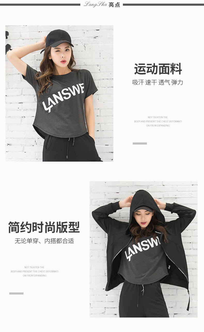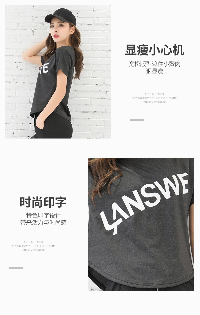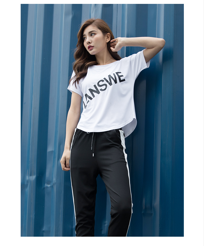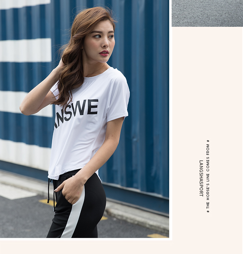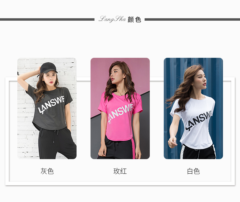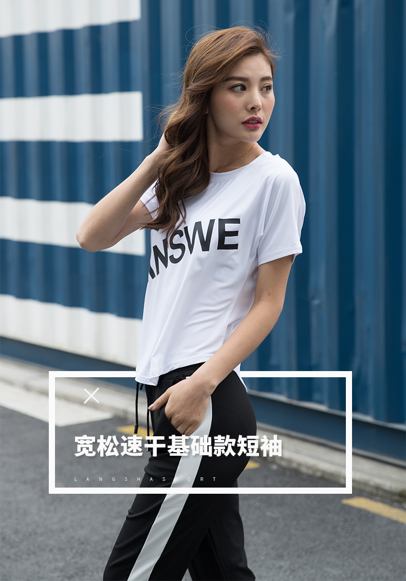 浪莎运动短袖T恤女大码宽松健身服跑步白色春夏速干上衣瑜伽半袖