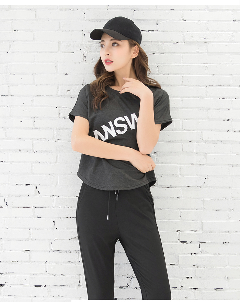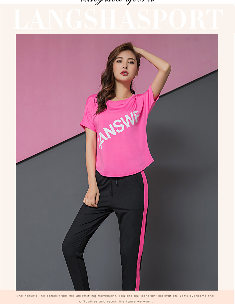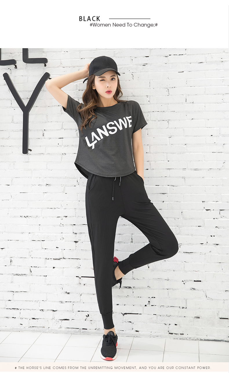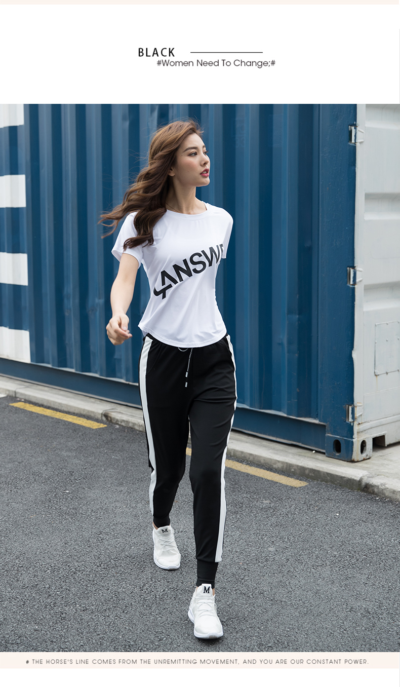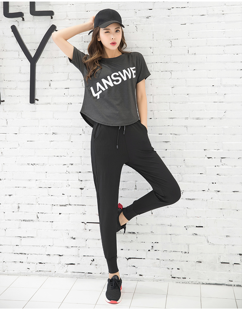 浪莎运动短袖T恤女大码宽松健身服跑步白色春夏速干上衣瑜伽半袖