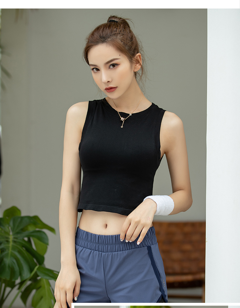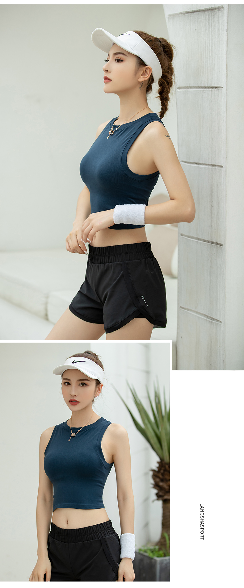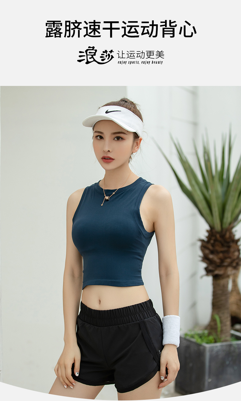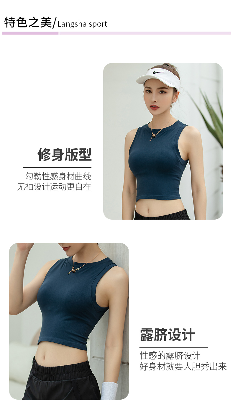 浪莎运动背心女紧身露脐无袖跑步瑜伽服上衣罩衫薄款健身速干T恤