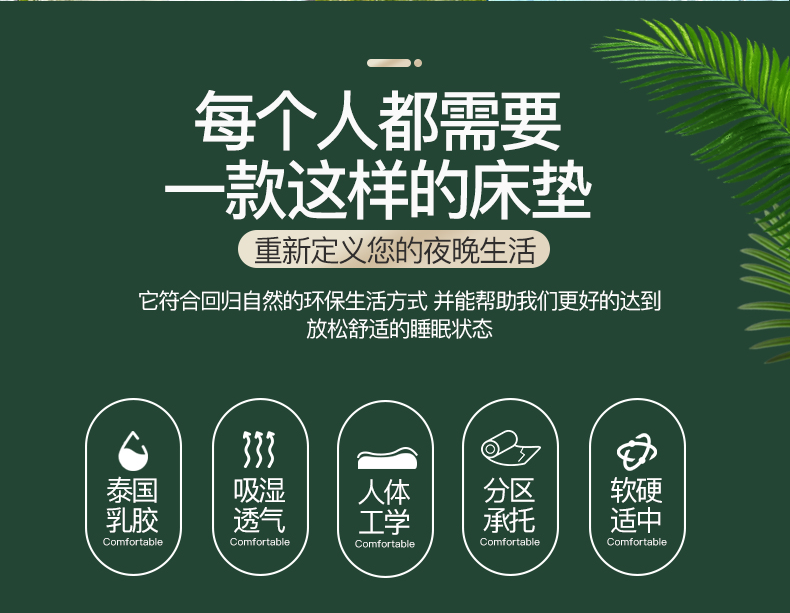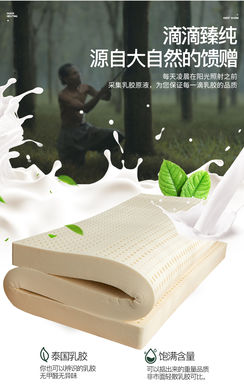 浪莎乳胶床垫泰国天然橡胶1.8m床纯10cm席梦思儿童1.5米5cm进口
