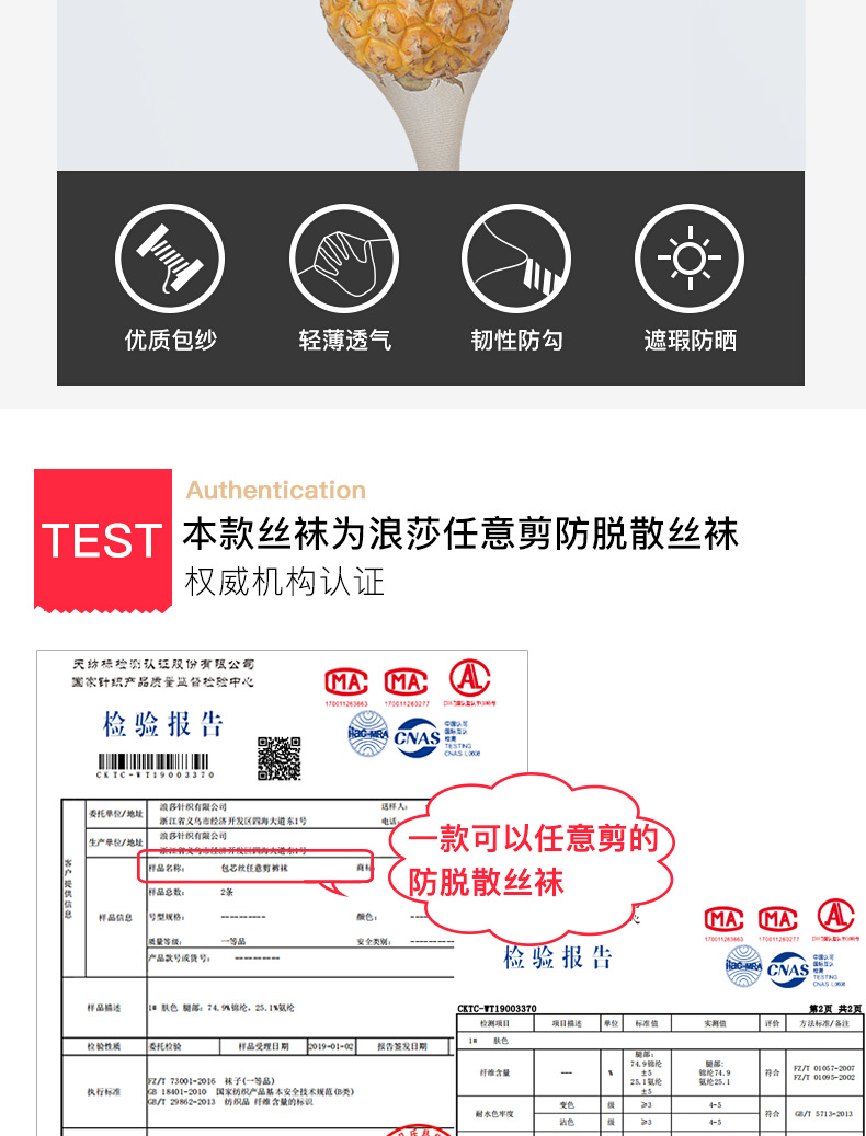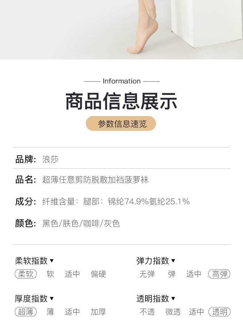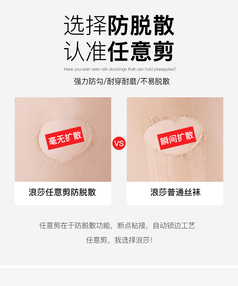 浪莎丝袜女防脱散菠萝袜 防勾丝连裤袜夏天黑肉色长筒丝袜薄款