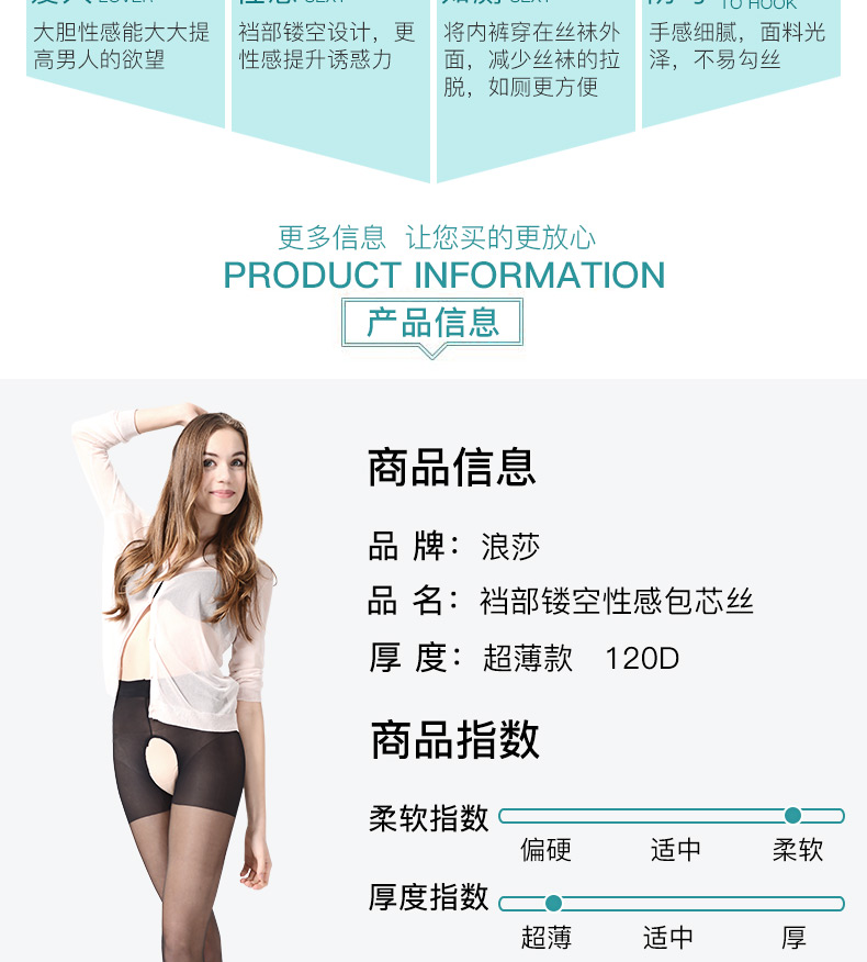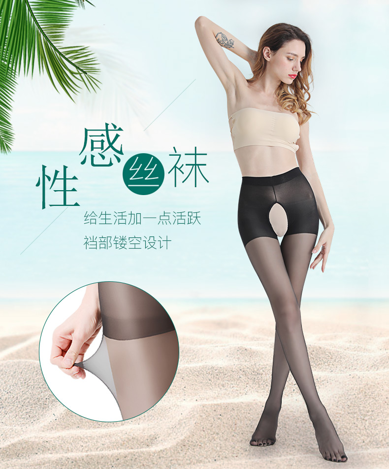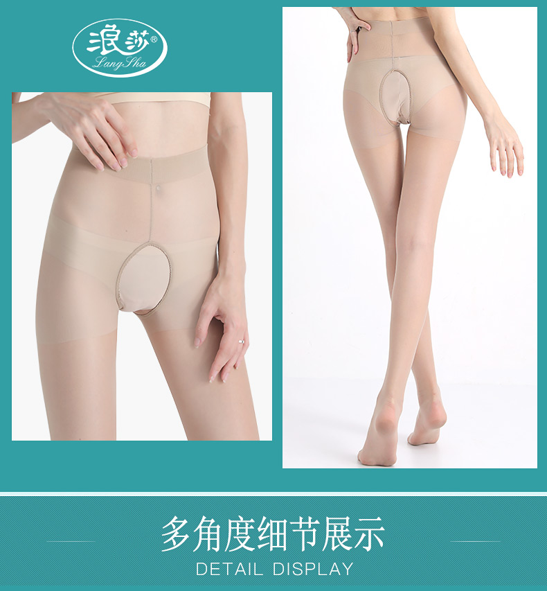 浪莎丝袜女性感裆部镂空黑丝连裤袜 夏季隐形薄款防勾丝打底袜