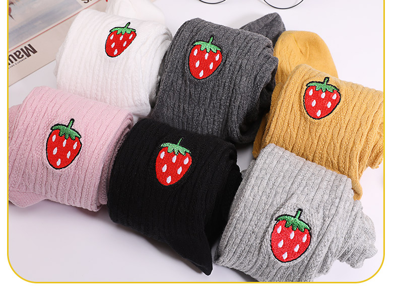 浪莎儿童连裤袜秋冬季女童刺绣草莓打底袜宝宝糖果色麻花条纹袜子