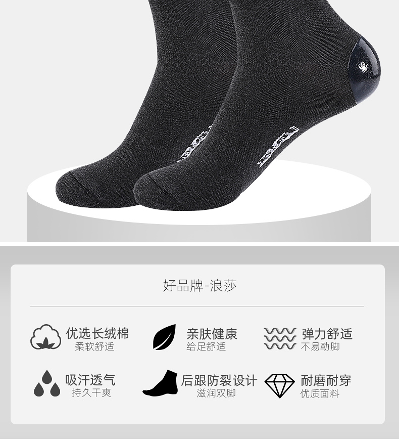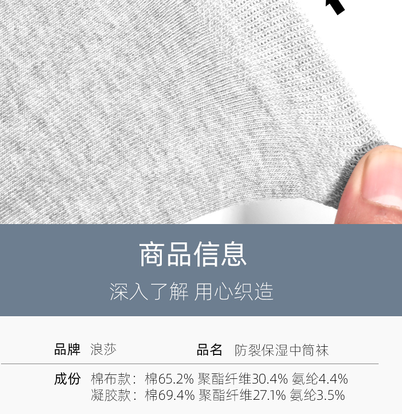 浪莎后跟防裂袜冬季防脚足裂口开裂袜子秋冬男女厚棉袜中筒干裂袜