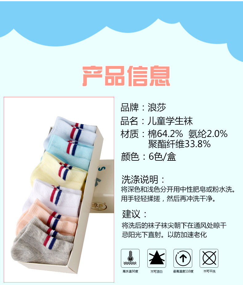 浪莎儿童袜子夏季潮薄款男童女童船袜网眼棉袜短袜3-5-7-9-12岁