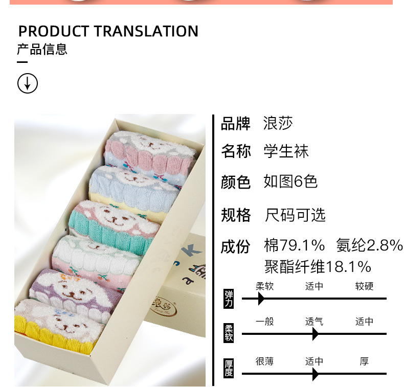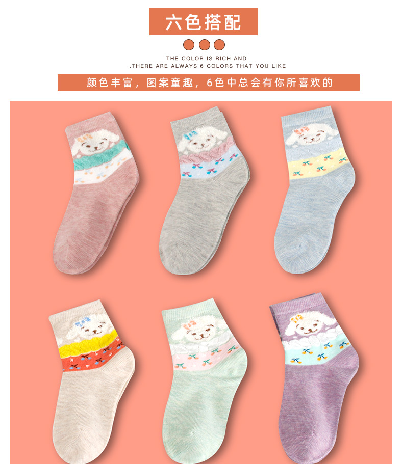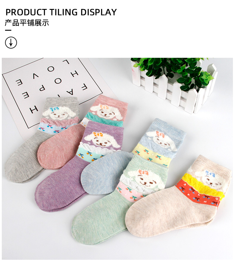 浪莎女童袜子中筒春秋款儿童花边袜超萌公主袜中大童宝宝女孩棉袜