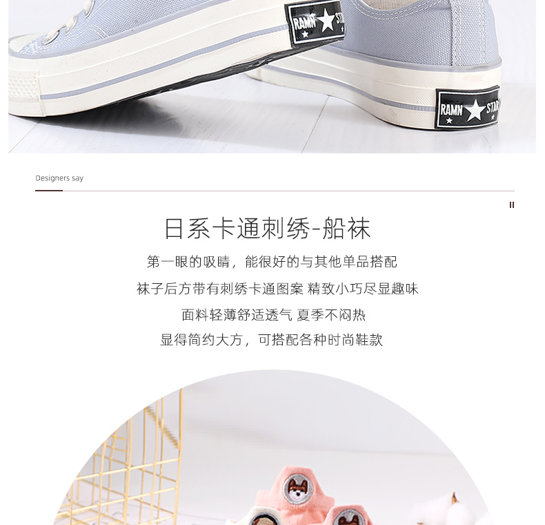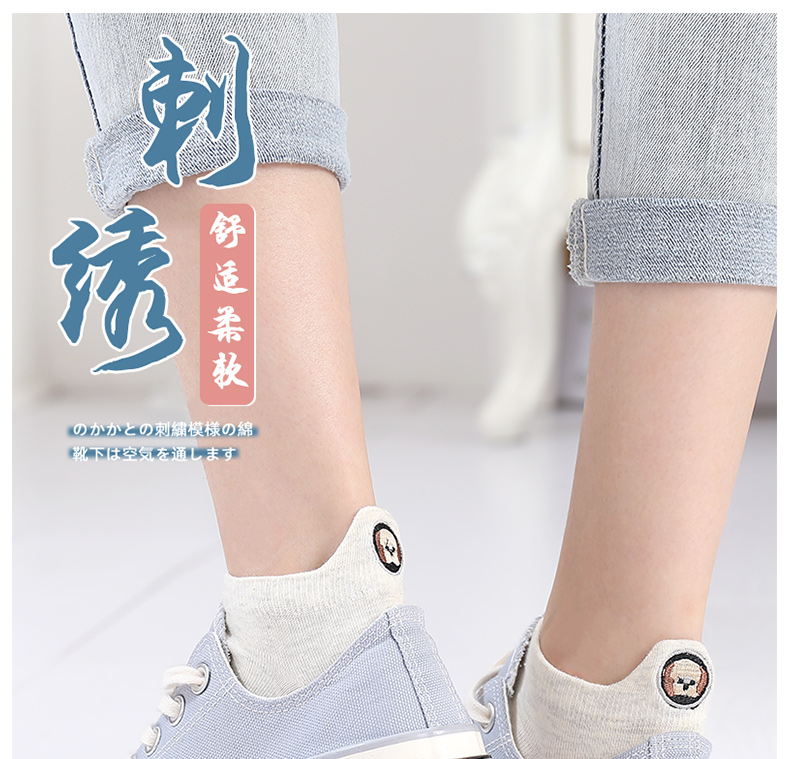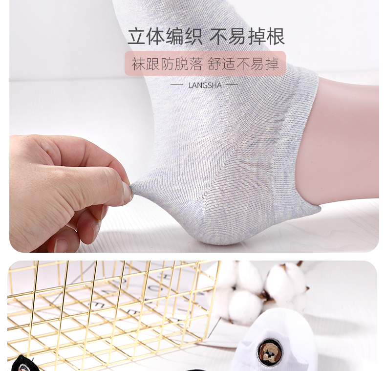 浪莎袜子女士浅口船袜春夏季薄款隐形短袜夏天可爱刺绣ins潮棉袜