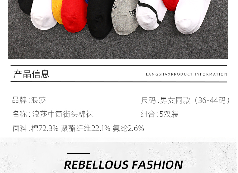 浪莎袜子男中筒袜欧美ins潮春夏季防臭女长筒袜篮球高帮运动棉袜