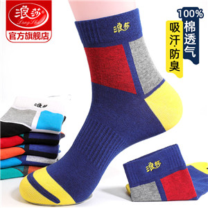 浪莎袜子男士纯棉中筒袜秋季薄款吸汗运动篮球全棉春秋透气短袜潮