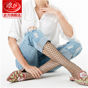 浪莎丝袜春夏超薄性感黑丝袜子女 搭配破洞牛仔裤渔网袜连裤袜