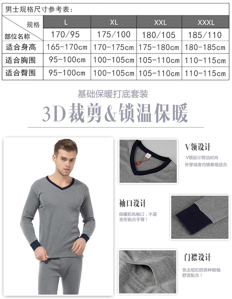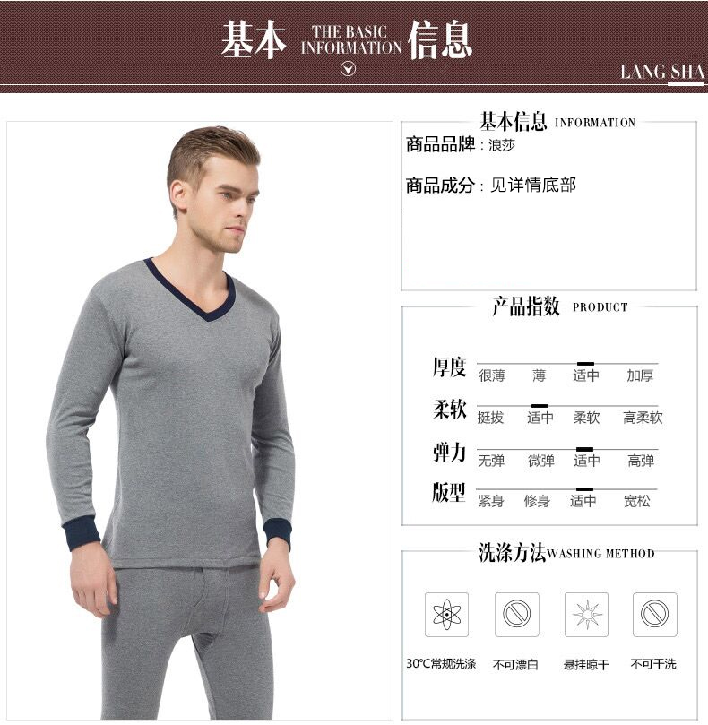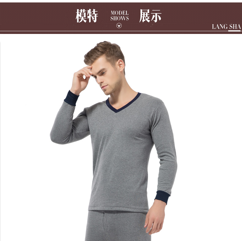浪莎保暖内衣男士保暖衣青年中老年宽松秋衣秋裤套装