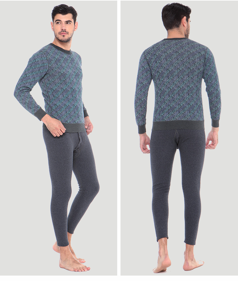 浪莎条纹个性保暖内衣男士加厚加绒中老年人爸爸冬季秋衣秋裤套装