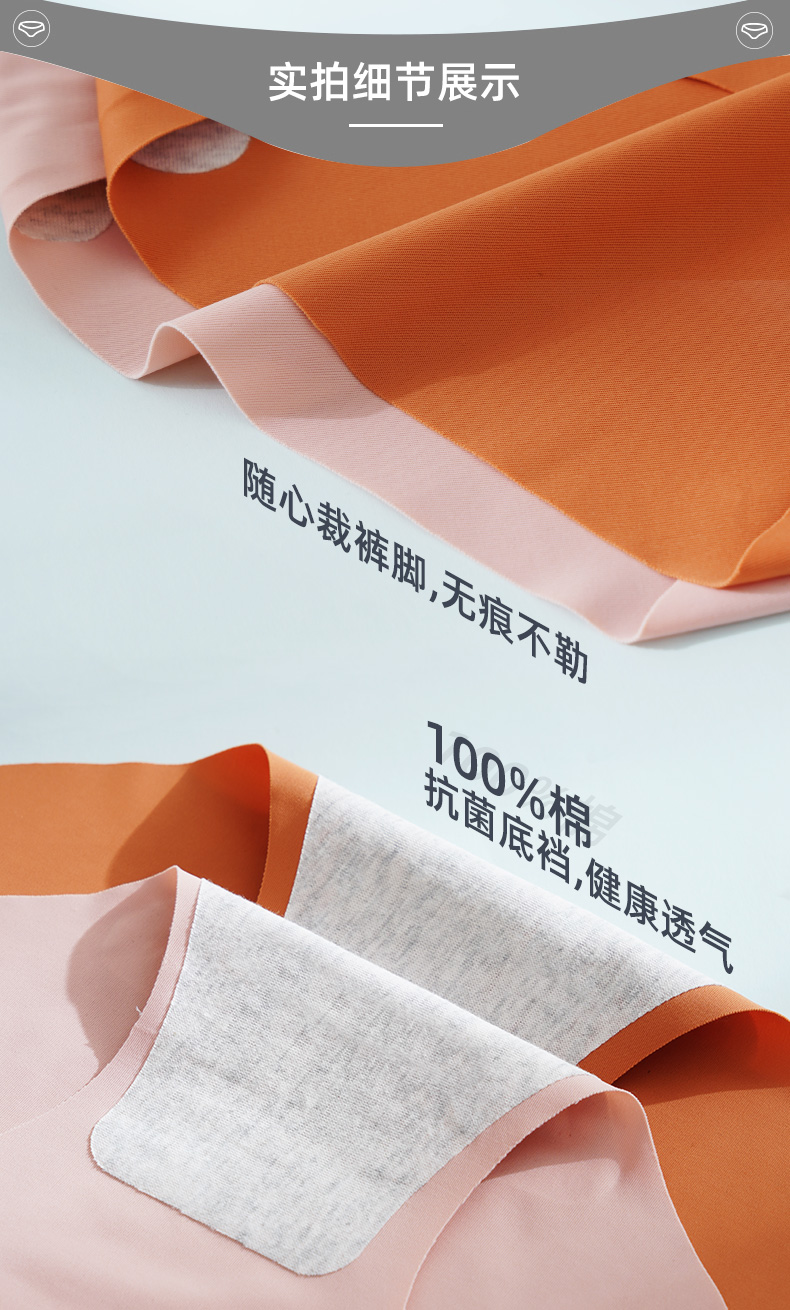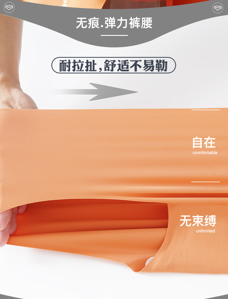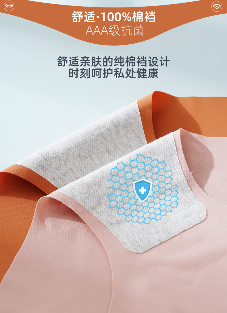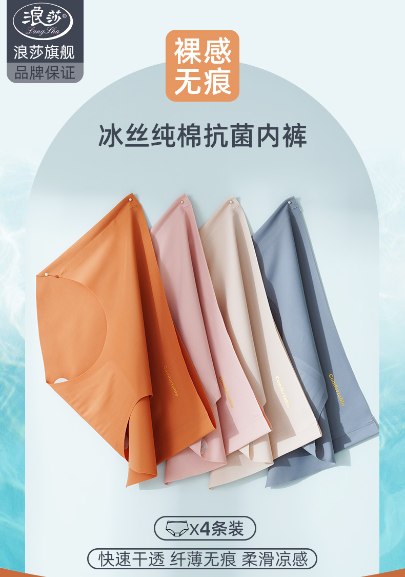 浪莎无痕内裤女士冰丝纯棉裆抗菌春夏薄透气一片式中腰三角短裤ZW