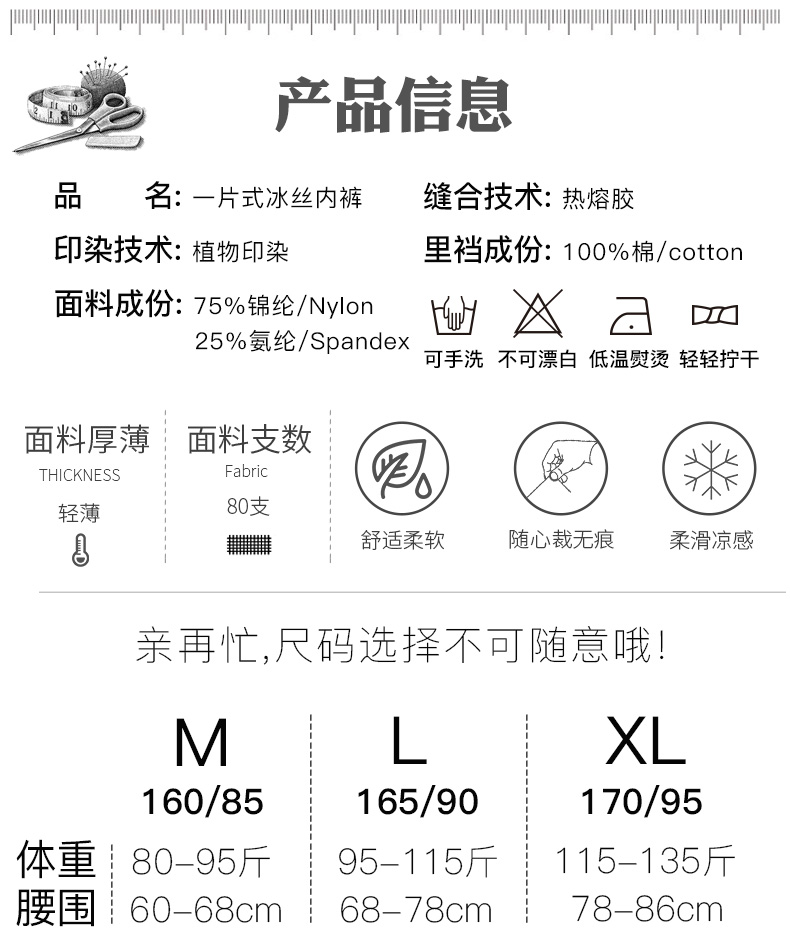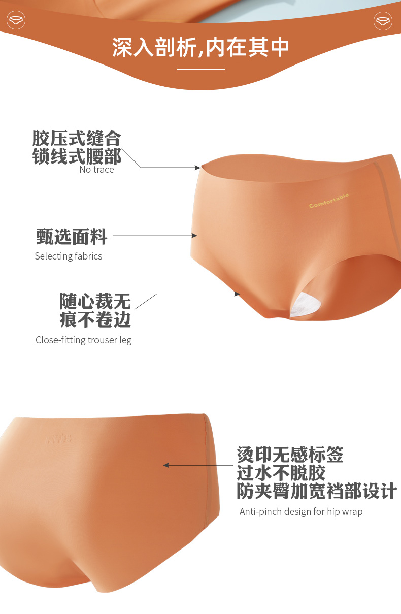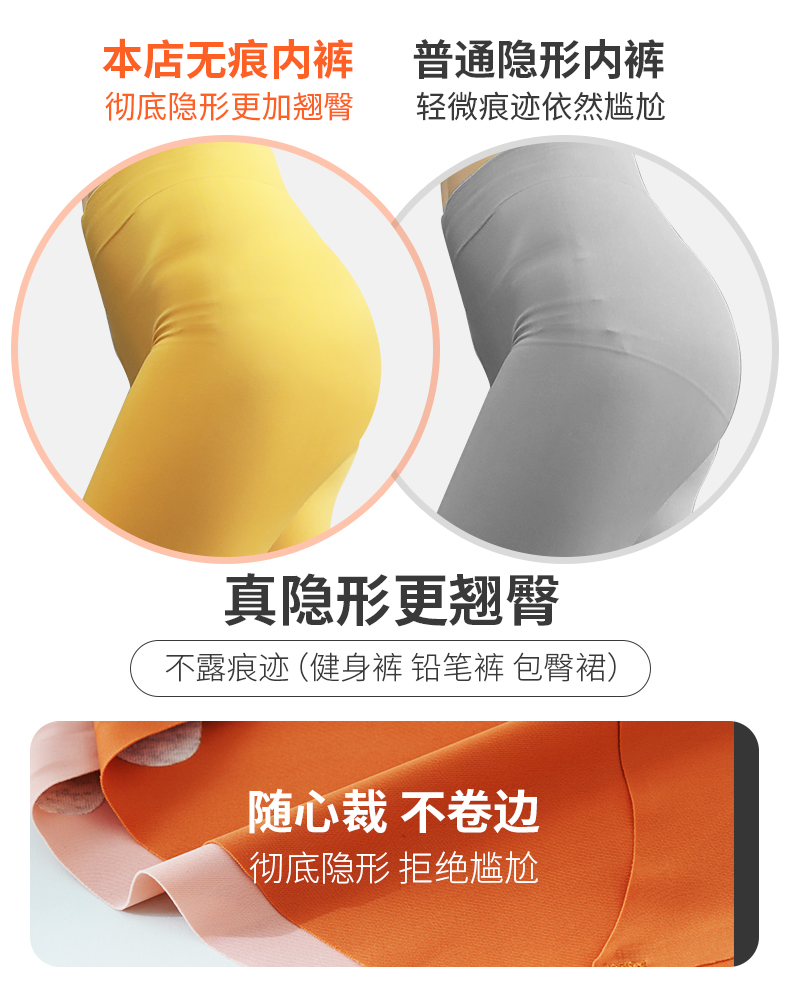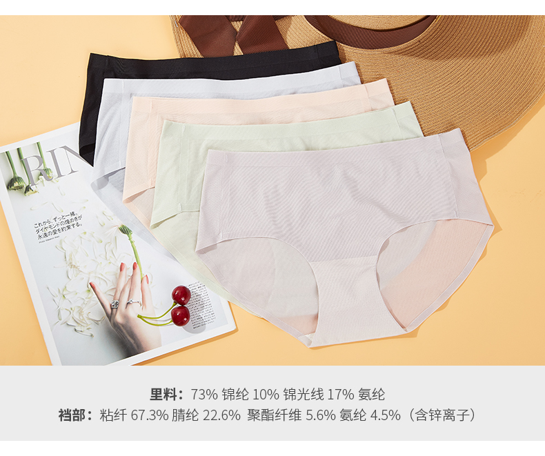 浪莎无痕内裤女士冰丝纯棉裆抗菌春夏薄透气一片式中腰三角短裤ZW