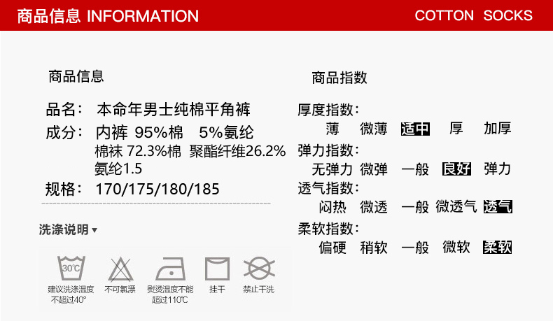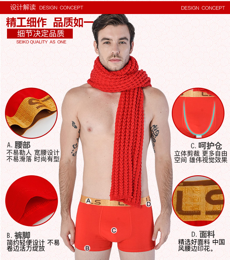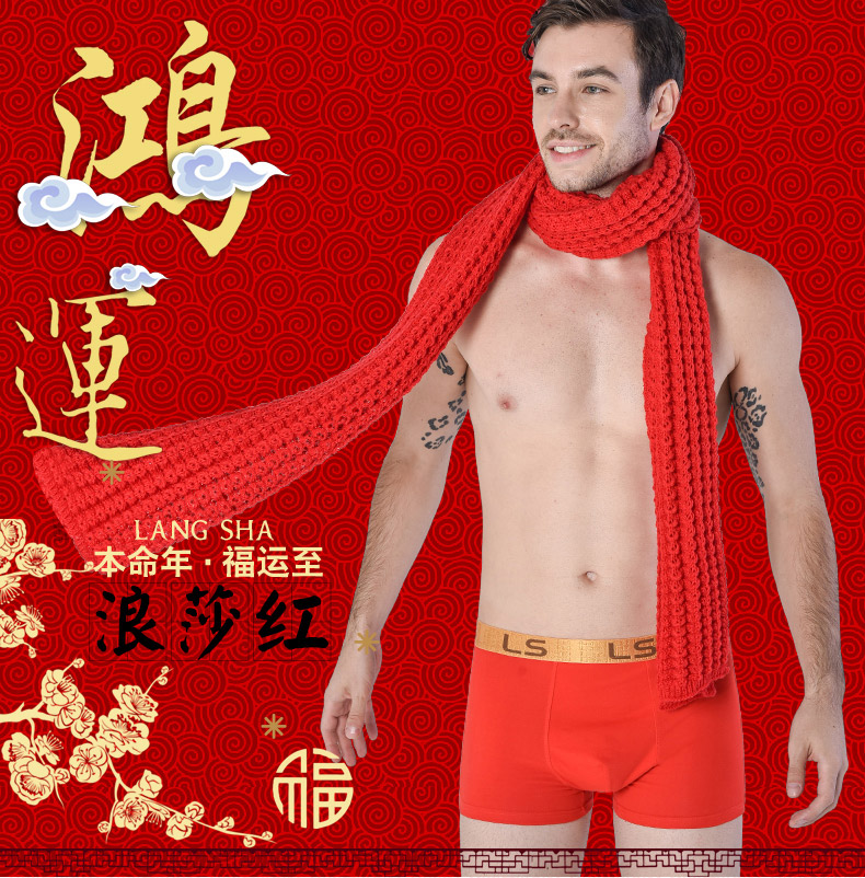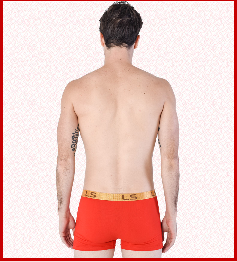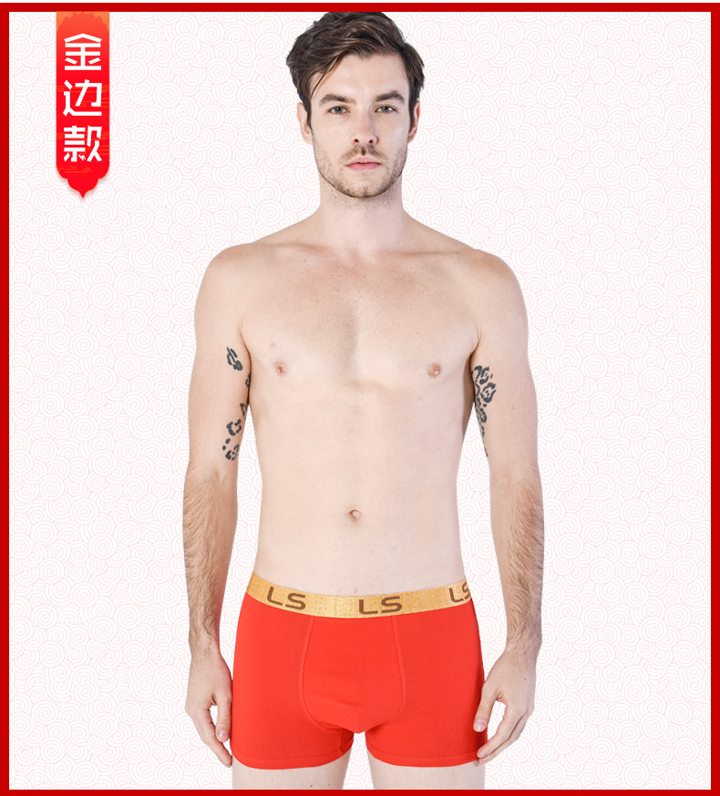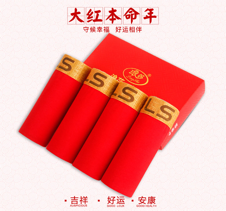 浪莎男士内裤男纯棉本命年牛四角裤红色平角裤结婚礼物男式短裤头
