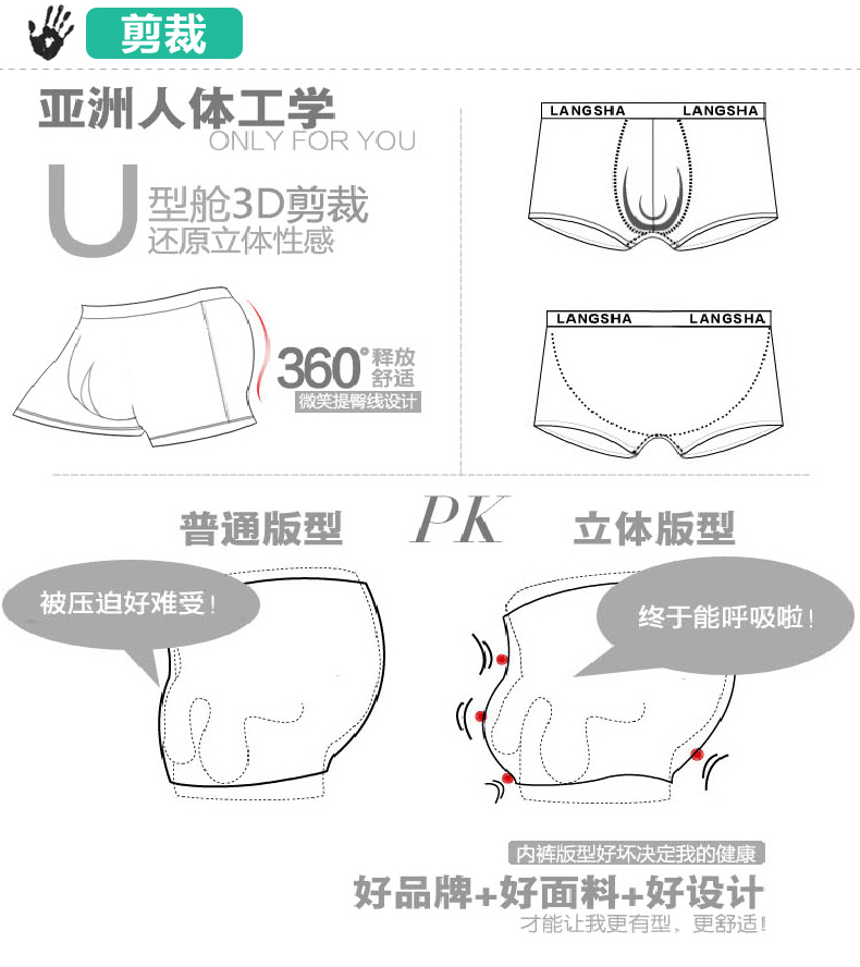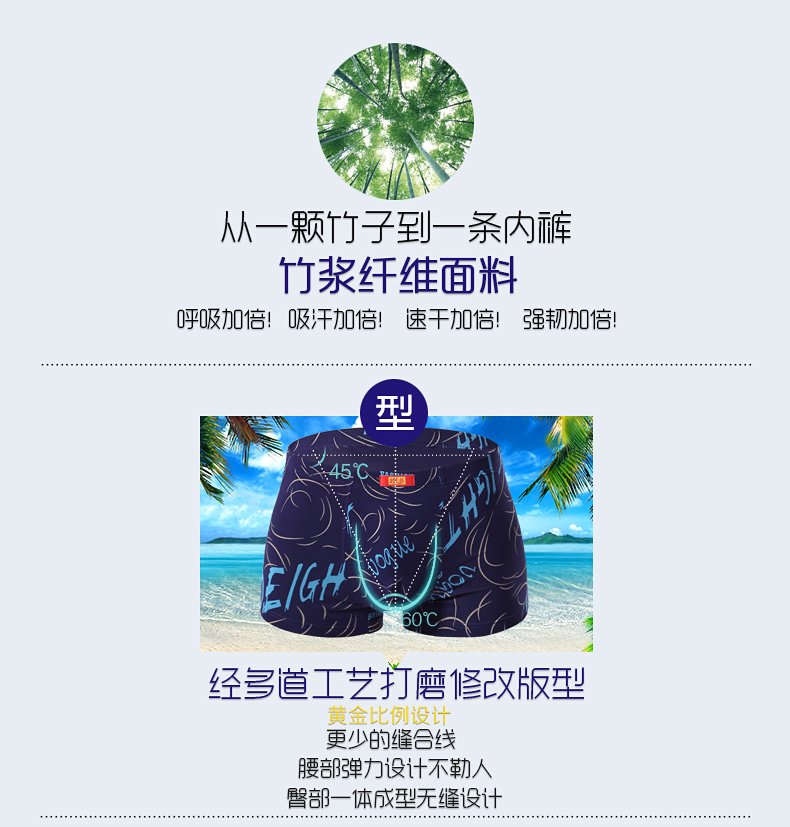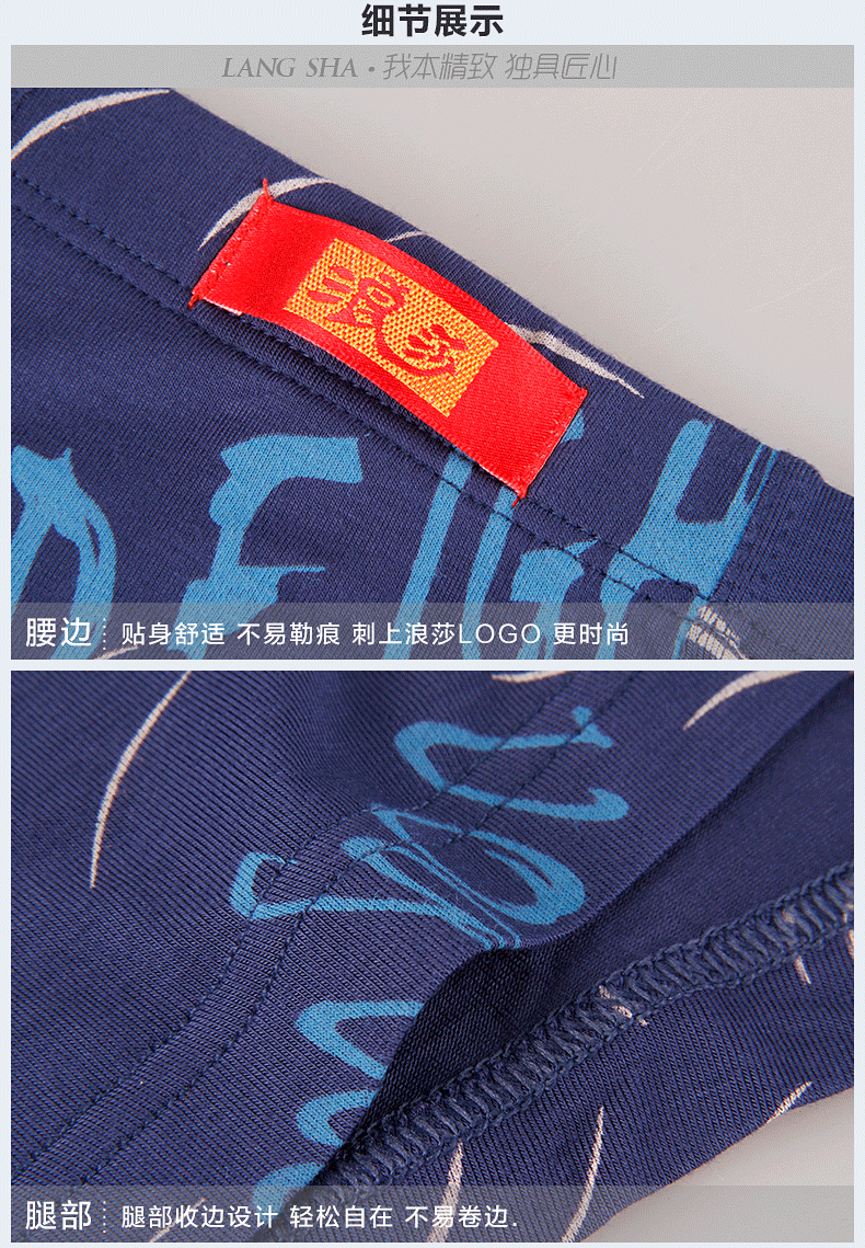 浪莎内裤 男士平角裤中腰青年春夏透气U凸印花四角短裤衩男
